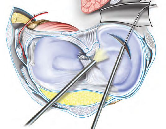 위 그림처럼 관절경 수술로 경골 안쪽부터 구멍을 뚫고 대퇴골은 외측 방향으로 구멍을 뚫어 전방십자인대의 길을 만들고 나사로 고정하는 수술을 받게 됩니다.